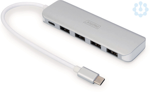 Mit diesem USB Type-C? 4-Port Hub erweitern Sie Ihren vorhandenen Laptop mit USB-C? Port um vier USB 3.0 Ports. Nutzen Sie bis zu vier weitere USB Geräte, wie Maus, Keyboard oder USB-Sticks an Ihrem Laptop. Zusätzlich befindet sich ein USB-C? (PD) Anschluss an dem Hub, über welchen Sie Ihren Laptop laden können. Der Digitus USB-C? 4-Port Hub ist dank seines schlanken Designs der ideale Begleiter au