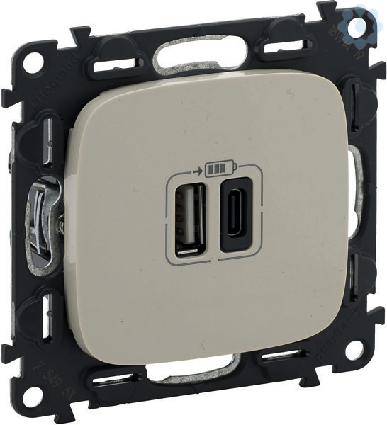 2-fach USB-Ladesteckdosen 1xTyp C und 1xTyp A, USB-C-Stecker, lassen sich beidseitig einstecken, z. B. zum Laden von Smartphones, MP3-/MP4-Player und Tablets. Ausgangsspannung 5 V mit maximalem Ladestrom von Typ C 3000 mA bei einem Gerät oder 1500 mA pro Ausgang bei gleichzeitigem Laden von 2 Geräten. Schraubklemmenanschluss: 230 V~, 15W, Verbrauch im Standbymodus 0,075W, geliefert inkl. Abdeckung, Ladekabel nicht im Lieferumfang enthalten. Farbe: Mandelweiß