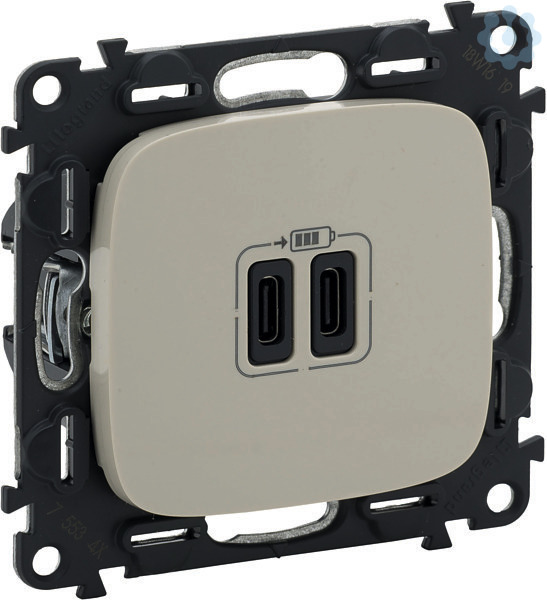 2-fach USB-Ladesteckdosen Typ C, USB-C-Stecker, lassen sich beidseitig einstecken, z. B. zum Laden von Smartphones, MP3-/MP4-Player und Tablets. Ausgangsspannung 5 V mit maximalem Ladestrom von 3000 mA bei einem Gerät oder 1500 mA pro Ausgang bei gleichzeitigem Laden von 2 Geräten. Schraubklemmenanschluss: 230 V~, 15W, Verbrauch im Standbymodus 0,075W, Geliefert inkl. Abdeckung, Ladekabel nicht im Lieferumfang enthalten. Farbe: Mandelweiß