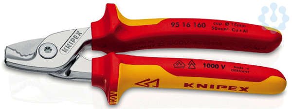 95 16 160 KNIPEX StepCut Klein, leicht, stark: angenehm Schneiden ohne zu quetschen bei nur 160 mm Größe. Spürbar weniger Kraftaufwand: Die Abstufungen schneiden Adern nacheinander, der Schnitt ist bis zu 40% leichter als bei Standard-Kabelscheren gleicher Länge!. Ergonomische Schenkelgestaltung: optimales Schneidgefühl auch bei größeren Kabeldurchmessern. Schneidet Cu- und Al-Mehrleiterkabel feinadrig bis Ø 15 mm (50 mm²). Schneidet massive Cu- und Al-Kabel bis 5 x 4 mm². Schneidet ohne zu quetschen. Geschraubtes Gelenk: präzise, leichtgängig, langlebig. Mit Klemmschutz für sicheres Arbeiten. Nicht für Stahldraht und hartgezogene Kupferleiter geeignet. Schneiden zusätzlich induktiv gehärtet, Schneidenhärte ca. 56 HRC. - Schneidwert Cu-Kabel, mehrdrähtig: 50mm² - Schneidwert Cu-Kabel, mehrdrähtig: Ø 15mm - AWG: 1?/ 0 - VDE-geprüft: Ja