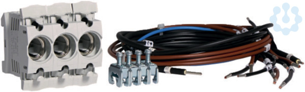 Wandlerzubehör,UniversN,Bausatz,Wandlermessleitungssatz,3poligD01,KEVAG. Bestückungspaket: Spannungspfadsicherung für Wandleranlagen bestehend aus: 1x Neozedelement 3pol. D02, 3x Sammelschienenklemmen für CU 12x5 mm, 3x kurzschlussfesten Leitungen 4qmm mit Aderendhülsen, 1x H07V-K 2,5 mm² blau, 3x H07V-K 2,5 mm² schwarz, 6x H07V-K 4 mm² schwarz und braun Wandlermessleitungen.