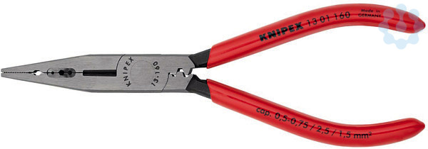 13 01 160 Verdrahtungszange Die ideale Zange bei Verkabelungsarbeiten. Zum Greifen und Biegen von Drähten. Zum Schneiden von mittelhartem und hartem Draht. Präzisionsschneiden zusätzlich induktiv gehärtet, Schneidenhärte ca. 60 HRC. Mit Präzisions-Abisolierlöchern. Zum Crimpen von Aderendhülsen. - Schneidwerte mittelharter Draht (Durchmesser): Ø 2,5 - Schneidwerte harter Draht (Durchmesser): Ø 1,6 - Abisolierwerte Quadratmillimeter: 0,5???0,75?/ 1,5?/ 2,5mm²