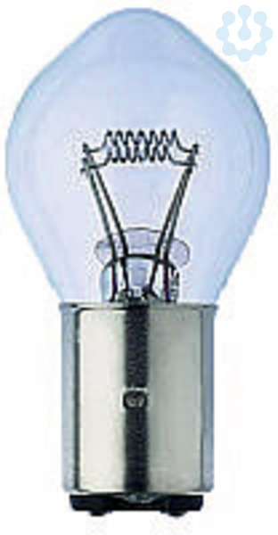 Verkehrs-Signallampe, Überdruck-Lampen mit Zweiwendeltechnik. Kompakte 2-Wendelausführung für automatische Umschaltung auf die Nebenwendel bei Ausfall der Hauptwendel. Korrosionsfester, messing-vernickelter Sockel. Vorteile: reduzierte Warungskosten gegenüber 230 V Standard-Lampen, hohe Verkehrssicherheit durch den Nebenwendel, hoher nahezu gleichbleibender Lichtstrom, hohe Wendelstabilität. Einsatgebiete: stationäre und mobile Lichtzeichenanlagen im Straßenverkehr, besonders für Rot-Signale. Energieeffizienzklasse: nicht kennzeichnungspflichtig