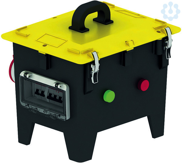 verschlüsse, Gerätefarbe: Gehäuseoberteil gelb ähnlich RAL 1021, Gehäuseunterteil schwarz ähnlich RAL 9017, Gerätehöhe: 297 mm, Gerätebreite: 320 mm, Gerätetiefe: 245 mm,