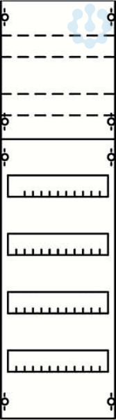 Innenausbausystem, Verteilerfelder, montiert auf EDF-Profil, für Reiheneinbaugeräte und Reihenklemmen, Rasteinheit 6 RE = 900 mm, Feldbreite 1 = 250 mm, 72 Platzeinheiten, Reihenabstand: 125, Ausbau mit Hutprofilschiene 35 x 15 mm mit Lochung für Drahthalter, für Einbaugeräte nach DIN 43880, Abdeckungen aus Kunststoff, 90 Grad Druck-Drehverschluss, RAL 7035, Ausführung der Abdeckung: mit Ausschnitt, einsetzbar ab einer Schranktiefe von 120 mm, Verteilerfelder oder Feldkombinationen müssen die gleichen Rastereinheiten haben wie die Schränke, in die sie eingebaut werden. Bei Stand- und Reihenschaltschränken müssen zwei Felder oder Feldkombinationen übereinander eingebaut werden. Die EDF-Profilschienen sind im Lieferumfang enthalten.