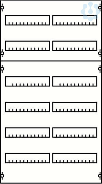 Innenausbausystem, Verteilerfelder, montiert auf EDF-Profil, für DIN Reiheneinbaugeräte, Rasteinheit 6 RE = 900 mm, Feldbreite 2 = 500 mm, 144 Platzeinheiten, Reihenabstand: 125, Ausbau mit Hutprofilschiene 35 x 15 mm mit Lochung für Drahthalter, für Einbaugeräte nach DIN 43880, Abdeckungen aus Kunststoff, 90 Grad Druck-Drehverschluss, RAL 7035, Ausführung der Abdeckung: mit Ausschnitt, einsetzbar ab einer Schranktiefe von 120 mm, Verteilerfelder oder Feldkombinationen müssen die gleichen Rastereinheiten haben wie die Schränke, in die sie eingebaut werden. Bei Stand- und Reihenschaltschränken müssen zwei Felder oder Feldkombinationen übereinander eingebaut werden. Die EDF-Profilschienen sind im Lieferumfang enthalten.
