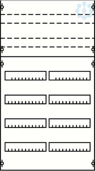Innenausbausystem, Verteilerfelder, montiert auf EDF-Profil, für Reiheneinbaugeräte und Reihenklemmen, Rasteinheit 6 RE = 900 mm, Feldbreite 2 = 500 mm, 144 Platzeinheiten, Reihenabstand: 125, Ausbau mit Hutprofilschiene 35 x 15 mm mit Lochung für Drahthalter, für Einbaugeräte nach DIN 43880, Abdeckungen aus Kunststoff, 90 Grad Druck-Drehverschluss, RAL 7035, Ausführung der Abdeckung: mit Ausschnitt, einsetzbar ab einer Schranktiefe von 120 mm, Verteilerfelder oder Feldkombinationen müssen die gleichen Rastereinheiten haben wie die Schränke, in die sie eingebaut werden. Bei Stand- und Reihenschaltschränken müssen zwei Felder oder Feldkombinationen übereinander eingebaut werden. Die EDF-Profilschienen sind im Lieferumfang enthalten.