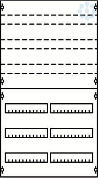 Innenausbausystem, Verteilerfelder, montiert auf EDF-Profil, für Reiheneinbaugeräte und Reihenklemmen, Rasteinheit 6 RE = 900 mm, Feldbreite 2 = 500 mm, 144 Platzeinheiten, Reihenabstand: 125, Ausbau mit Hutprofilschiene 35 x 15 mm mit Lochung für Drahthalter, für Einbaugeräte nach DIN 43880, Abdeckungen aus Kunststoff, 90 Grad Druck-Drehverschluss, RAL 7035, Ausführung der Abdeckung: mit Ausschnitt, einsetzbar ab einer Schranktiefe von 120 mm, Verteilerfelder oder Feldkombinationen müssen die gleichen Rastereinheiten haben wie die Schränke, in die sie eingebaut werden. Bei Stand- und Reihenschaltschränken müssen zwei Felder oder Feldkombinationen übereinander eingebaut werden. Die EDF-Profilschienen sind im Lieferumfang enthalten.