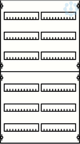 Innenausbausystem, Verteilerfelder, montiert auf EDF-Profil, für DIN Reiheneinbaugeräte, Rasteinheit 6 RE = 900 mm, Feldbreite 2 = 500 mm, 144 Platzeinheiten, Reihenabstand: 125, Ausbau mit Hutprofilschiene 35 x 15 mm mit Lochung für Drahthalter, für Einbaugeräte nach DIN 43880, Abdeckungen aus Kunststoff, 90 Grad Druck-Drehverschluss, RAL 7035, Ausführung der Abdeckung: mit Ausschnitt, einsetzbar ab einer Schranktiefe von 120 mm, Verteilerfelder oder Feldkombinationen müssen die gleichen Rastereinheiten haben wie die Schränke, in die sie eingebaut werden. Bei Stand- und Reihenschaltschränken müssen zwei Felder oder Feldkombinationen übereinander eingebaut werden. Die EDF-Profilschienen sind im Lieferumfang enthalten.
