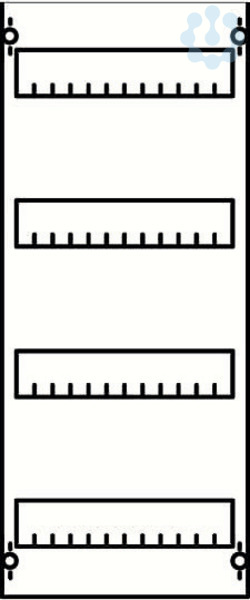 Innenausbausystem, Verteilerfelder, montiert auf EDF-Profil, für DIN Reiheneinbaugeräte, Rasteinheit 4 RE = 600 mm, Feldbreite 1 = 250 mm, 48 Platzeinheiten, Reihenabstand: 150, Ausbau mit Hutprofilschiene 35 x 15 mm mit Lochung für Drahthalter, für Einbaugeräte nach DIN 43880, Abdeckungen aus Kunststoff, 90 Grad Druck-Drehverschluss, RAL 7035, Ausführung der Abdeckung: mit Ausschnitt, einsetzbar ab einer Schranktiefe von 120 mm, Verteilerfelder oder Feldkombinationen müssen die gleichen Rastereinheiten haben wie die Schränke, in die sie eingebaut werden. Bei Stand- und Reihenschaltschränken müssen zwei Felder oder Feldkombinationen übereinander eingebaut werden. Die EDF-Profilschienen sind im Lieferumfang enthalten.