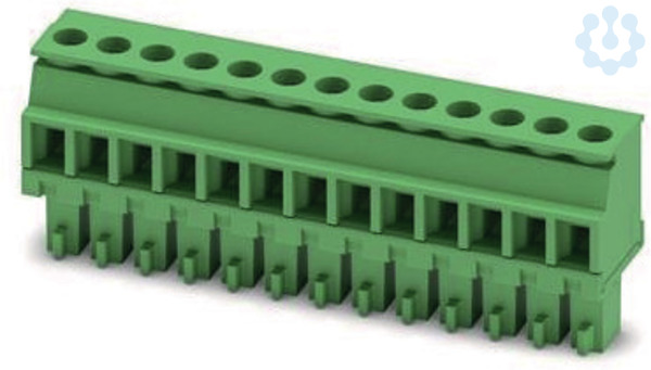 Leiterplattenstecker, Nennquerschnitt: 1,5 mm², Farbe: grün, Nennstrom: 8 A, Bemessungsspannung (III/2): 160 V, Kontaktoberfläche: Zinn, Kontaktart: Buchse (female), Anzahl der Potenziale: 13, Anzahl der Reihen: 1, Polzahl pro Reihe: 13, Anzahl der Anschlüsse: 13, Artikelfamilie: MCVR 1,5/..-ST, Rastermaß: 3,81 mm, Anschlussart: Schraubanschluss mit Zughülse, Schraubenangriffsform: L Längsschlitz, Anschlussrichtung Leiter/Platine: 90 °, Stecksystem: MINI COMBICON, Verriegelung: ohne, Befestigungsart: ohne, Verpackungsart: verpackt im Karton