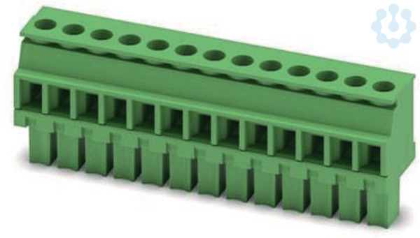Leiterplattenstecker, Nennquerschnitt: 1,5 mm², Farbe: grün, Nennstrom: 8 A, Bemessungsspannung (III/2): 160 V, Kontaktoberfläche: Zinn, Kontaktart: Buchse (female), Anzahl der Potenziale: 13, Anzahl der Reihen: 1, Polzahl pro Reihe: 13, Anzahl der Anschlüsse: 13, Artikelfamilie: MCVW 1,5/..-ST, Rastermaß: 3,81 mm, Anschlussart: Schraubanschluss mit Zughülse, Schraubenangriffsform: L Längsschlitz, Anschlussrichtung Leiter/Platine: -90 °, Stecksystem: MINI COMBICON, Verriegelung: ohne, Befestigungsart: ohne, Verpackungsart: verpackt im Karton