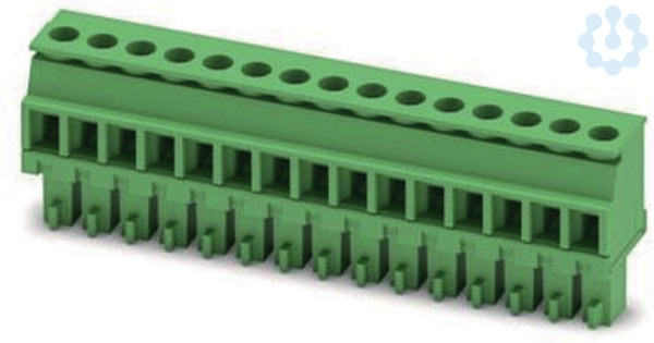 Leiterplattenstecker, Nennquerschnitt: 1,5 mm², Farbe: grün, Nennstrom: 8 A, Bemessungsspannung (III/2): 160 V, Kontaktoberfläche: Zinn, Kontaktart: Buchse (female), Anzahl der Potenziale: 15, Anzahl der Reihen: 1, Polzahl pro Reihe: 15, Anzahl der Anschlüsse: 15, Artikelfamilie: MCVR 1,5/..-ST, Rastermaß: 3,81 mm, Anschlussart: Schraubanschluss mit Zughülse, Schraubenangriffsform: L Längsschlitz, Anschlussrichtung Leiter/Platine: 90 °, Stecksystem: MINI COMBICON, Verriegelung: ohne, Befestigungsart: ohne, Verpackungsart: verpackt im Karton
