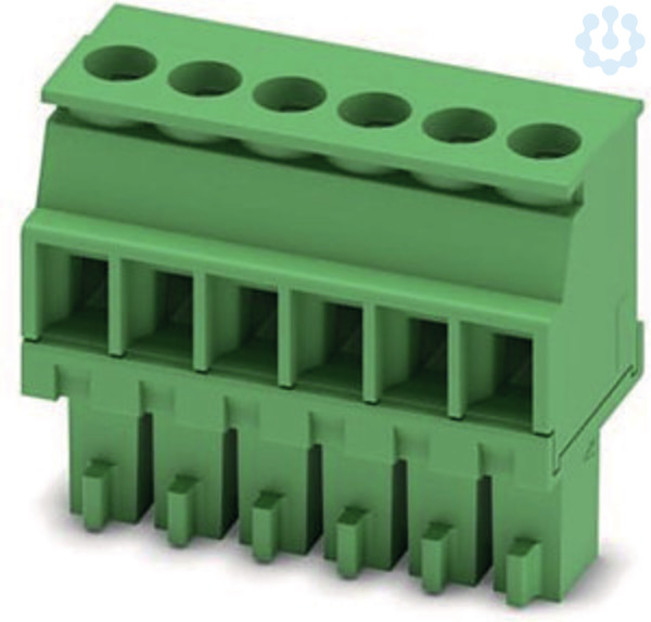 Leiterplattenstecker, Nennquerschnitt: 1,5 mm², Farbe: grün, Nennstrom: 8 A, Bemessungsspannung (III/2): 160 V, Kontaktoberfläche: Zinn, Kontaktart: Buchse (female), Anzahl der Potenziale: 6, Anzahl der Reihen: 1, Polzahl pro Reihe: 6, Anzahl der Anschlüsse: 6, Artikelfamilie: MCVR 1,5/..-ST, Rastermaß: 3,5 mm, Anschlussart: Schraubanschluss mit Zughülse, Schraubenangriffsform: L Längsschlitz, Anschlussrichtung Leiter/Platine: 90 °, Stecksystem: MINI COMBICON, Verriegelung: ohne, Befestigungsart: ohne, Verpackungsart: verpackt im Karton