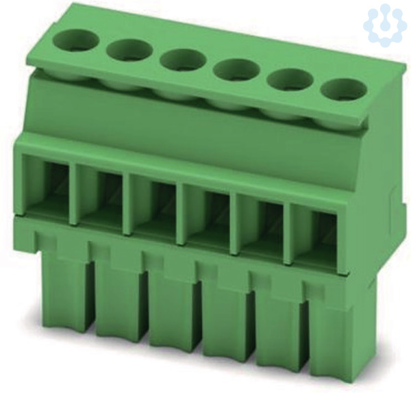 Leiterplattenstecker, Nennquerschnitt: 1,5 mm², Farbe: grün, Nennstrom: 8 A, Bemessungsspannung (III/2): 160 V, Kontaktoberfläche: Zinn, Kontaktart: Buchse (female), Anzahl der Potenziale: 6, Anzahl der Reihen: 1, Polzahl pro Reihe: 6, Anzahl der Anschlüsse: 6, Artikelfamilie: MCVW 1,5/..-ST, Rastermaß: 3,5 mm, Anschlussart: Schraubanschluss mit Zughülse, Schraubenangriffsform: L Längsschlitz, Anschlussrichtung Leiter/Platine: -90 °, Stecksystem: MINI COMBICON, Verriegelung: ohne, Befestigungsart: ohne, Verpackungsart: verpackt im Karton