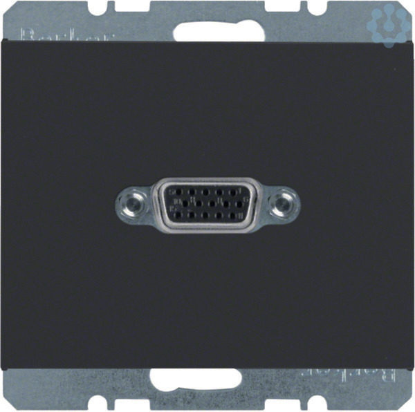 VGA Steckdose mit Schraub-Liftklemmen K.1 anthrazit, matt. VGA Steckdose mit Schraub-Liftklemmen geeignet zur Verbindung von z.B. PCs und Notebooks mit Anzeigegeräten, wie z.B. Monitoren (auch LCD-Monitoren) und Beamern, besonders für Montage in beengten Einbausituationen und zur freien Konfektionierung der VGA-Kabellänge, mit 15-poliger D-Subminiatur Buchse (Front), mit Schraub-Liftklemmen (Rück) für Anschluss an 15-adriges VGA-Kabel, S-VGA kompatibel, ohne Spreizkrallen.