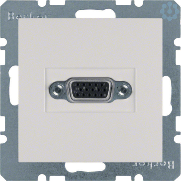 VGA Steckdose mit Schraub-Liftklemmen S.1/B.3/B.7 polarweiß, matt. VGA Steckdose mit Schraub-Liftklemmen geeignet zur Verbindung von z.B. PCs und Notebooks mit Anzeigegeräten, wie z.B. Monitoren (auch LCD-Monitoren) und Beamern, besonders für Montage in beengten Einbausituationen und zur freien Konfektionierung der VGA-Kabellänge, mit 15-poliger D-Subminiatur Buchse (Front), mit Schraub-Liftklemmen (Rück) für Anschluss an 15-adriges VGA-Kabel, S-VGA kompatibel, ohne Spreizkrallen.