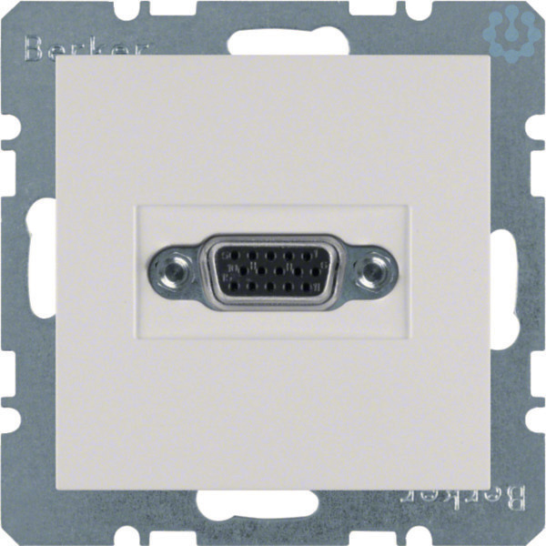 VGA Steckdose mit Schraub-Liftklemmen S.1/B.3/B.7 polarweiß, glänzend. VGA Steckdose mit Schraub-Liftklemmen geeignet zur Verbindung von z.B. PCs und Notebooks mit Anzeigegeräten, wie z.B. Monitoren (auch LCD-Monitoren) und Beamern, besonders für Montage in beengten Einbausituationen und zur freien Konfektionierung der VGA-Kabellänge, mit 15-poliger D-Subminiatur Buchse (Front), mit Schraub-Liftklemmen (Rück) für Anschluss an 15-adriges VGA-Kabel, S-VGA kompatibel, ohne Spreizkrallen.