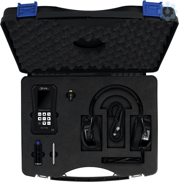 Der Vibrationsmesser ist der ideale Begleiter für die Überprüfung von vibrierenden Teilen, Maschinen und Anlagen. Mit dem externen Schwingungssensor bei dem Vibrationsmesser kann der Schwingweg bis 3,9 mm, die Schwinggeschwindigkeit bis 399,9 mm/s und die Schwingbeschleunigung bis 399,9 m/s² bestimmt werden. Als Messparameter stehen bei dem Schwingungsmesser RMS, Spitze, Spitze-Spitze und Scheitelfaktor zur Verfügung. Eine weitere Funktion vom Schwingungsmesser ist die automatische Bewertung nach ISO 10816-3. Demnach kann der Schwingungsmesser den aktuellen Schwingzustand einer Maschine über eine Gut-Schlecht-Bewertung bestimmen. Dadurch findet der Schwingungsmesser seine Anwendung zum Beispiel bei Reparatur- und Wartungsarbeiten an Maschinen. Der verbaute LiPo Akku mit einer Kapazität von 2500 mAh ist eine Akkulaufzeit von bis zu 20 Stunden möglich. Über die Micro-USB Schnittstelle bei dem Schwingungsmesser kann der LiPo Akku wieder aufgeladen werden. Um die Messwerte weiter zu verarbeiten, können diese au