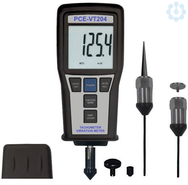 Das Vibrationsmessgerät ist ein wahres Multitalent. So ist dieses Vibrationsmessgerät in der Lage, die drei wichtigen Parameter der Vibration exakt zu messen und gleichzeitig kann er als Vibrationsmessgerät (optisch mit Reflexmarken oder kontaktierend via Messrad) verwendet werden. Das Vibrationsmessgerät ist also neben der Vibrationsüberwachung von Motoren, Getrieben, Schüttlern, Lagern ... auch zur Messung der Drehzahl an rotierenden Maschinen und Anlagen geeignet. Der mitgelieferte Beschleunigungssensor kann flächig aufgesetzt, mit dem ebenfalls mitgelieferten Magnetfuß versehen werden oder Sie kombinieren den Sensor mit der anschraubbaren Nadelspitze (auch im Lieferumfang). Wenn Sie die Messdaten direkt vom Vibrationsmessgerät (oder aus dem Speicher) zu einem PC / Laptop übertragen möchten, können Sie die optional erhältliche Software dazu verwenden. Die internen Frequenzfilter unterdrücken Hintergrundgeräusche, sodass nur die spezifischen Vibrationen aufgenommen werden.