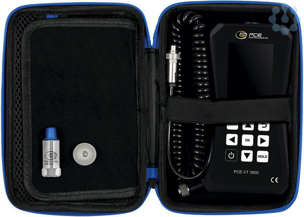 Das Vibrationsmessgerät ist ein ideales Messmittel zur schnellen und präzisen Überprüfung von vibrierenden Teilen, Maschinen und auch Anlagen. Dieses Vibrationsmessgerät ermittelt über den externen Schwingungssensor den Schwingweg (Messbereich 0,000 ... 3,9 mm), die Schwinggeschwindigkeit (Messbereich 0,00 ... 399,9 mm/s) und die Schwingbeschleunigung (Messbereich 0,0 ... 399,9 m/s²). Dabei stehen bei dem Vibrationsmessgerät verschiedene Messparamater zur Verfügung, wie zum Beispiel RMS, Spitze, Spitze-Spitze und Scheitelfaktor. Das Vibrationsmessgerät ist mit einem Modus ausgestattet, der es erlaubt eine Messung automatisch nach den Grenzwerten der ISO 10816-3 zu bewerten. Das Vibrationsmessgerät analysiert die Messwerte und zeigt auf dem Display eine entsprechende Gut-Schlecht-Bewertung an. Der verbaute Akku bei dem Vibrationsmessgerät hat eine Kapazität von 2500 mAh und kann direkt über die verbaute Micro-USB Schnittstelle wieder aufgeladen werden. Neben dem normalen Messmodus verfügt das Vibrationsmessge