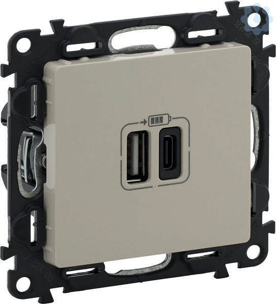 2-fach USB-Ladesteckdosen 1xTyp C und 1xTyp A, USB-C-Stecker, lassen sich beidseitig einstecken, z. B. zum Laden von Smartphones, MP3-/MP4-Player und Tablets. Ausgangsspannung 5 V mit maximalem Ladestrom von Typ C 3000 mA bei einem Gerät oder 1500 mA pro Ausgang bei gleichzeitigem Laden von 2 Geräten. Schraubklemmenanschluss: 230 V~, 15W, Verbrauch im Standbymodus 0,075W, geliefert inkl. Abdeckung, Ladekabel nicht im Lieferumfang enthalten. Farbe: Mandelweiß
