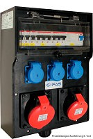 zum Auflegen und Durchschleifen der Zuleitung Ausgang:4 CEE-Einbausteckdosen 3 x 16 A/230 V abgesichert ueber