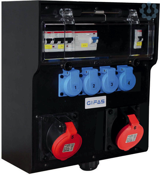 zum Auflegen der Zuleitung1 32/4x8mm von oben für die Datenleitungen Ausgang: 1 CEE Einbausteckdose 5 x 63 A/400 V abgesichert über 1 LS-Schalter 63 A, 3polig in C-Charakteristik1 CEE Einbausteckdose 5 x 16 A/400 V abgesichert über 1 LS-Schalter 16 A, 3polig in C-Charakteristik4 Schutzkontaktsteckdosen 230 V abgesichert über 4 LS-Schalter 16 A, 1polig in B-Charakteristik1 FI-Schalter 63/0,03 A, 4polig für alle Steckdosen Einbauten: 2 Datendoppeldosen RJ45, Cat.6 Ausführung: Schutzorgane hinter 1 Transparentschutzklappe angeordnet Abmessungen: H x B x T = 370 x 336 x 162mm Schutzart: IP 54Gl-Faktor: 0,56 Gewicht: ca. 8 kg