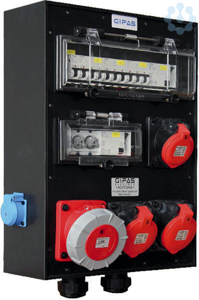 und Durchschleifen der Zuleitung 5 x 25 qmm Ausgang:1 CEE-Einbausteckdose 5 x 63 A/400 V abgesichert ueber