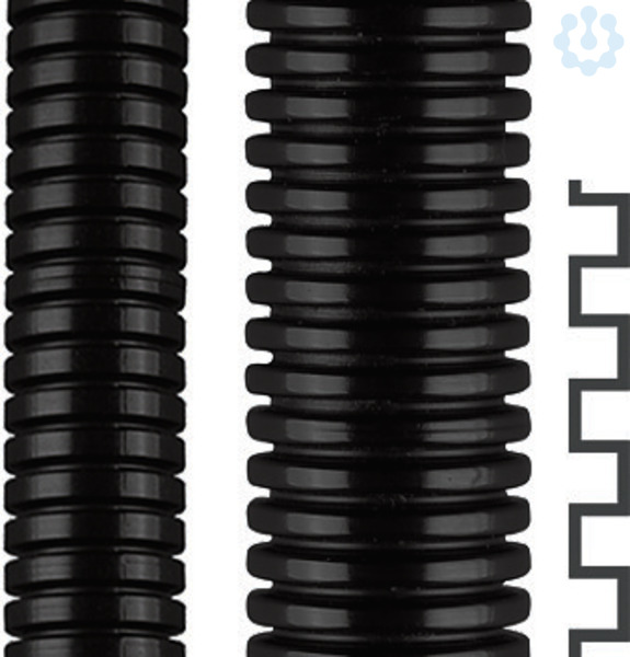 Vollkunststoff-Wellschlauch ROHRflex PA 12-S, V2 (UL 94), IP 68/IP 69K für sehr flexible Anwendungen, Außenbereich, innen und außen gewellt, schmales Profil, Material: Kunststoff (PA), Farbe: schwarz, Temperaturbereich: -50°C...+100°C ^ ... 130°C, Zulassungen: VDE geprüft EN/IEC 61386-23 / UL 1696 - CSA 22.2 UR-File-no E86359, Eigenschaften: hohe Wechselbiegefestigkeit / gute Isolationseigenschaften / luft- und flüssigkeitsdicht / öl- und benzinbeständig / weitgehend säure- und lösungsmmittelbeständig / silikon-, cadmium-, halogenfrei / selbstverlöschend / flammwidrig / UV-beständig, Einsatzbereich: Maschinenbau / Anlagenbau / Fahrzeugbau / Schienenfahrzeuge (speziell im Außenbereich) / Schiffsbau / Automation / Elektroanlagen