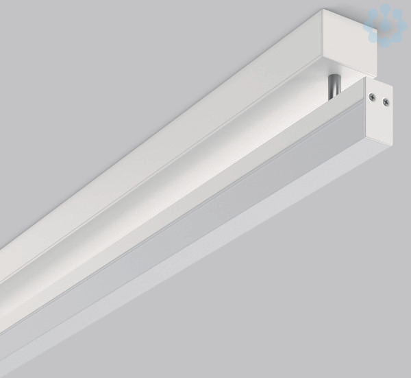 Minimalistische Decken- und Wandleuchte mit dreiseitiger Lichtabstrahlung. Gehäuse Aluminium-Strangpressprofil eloxiert oder pulverbeschichtet. Endkappen Aluminium eloxiert oder pulverbeschichtet. Diffusor aus vergilbungsfreiem Kunststoff (PMMA) opal. Geeignet für Deckenanbau, Wandanbau. Betriebsgerät im Baldachin integriert.