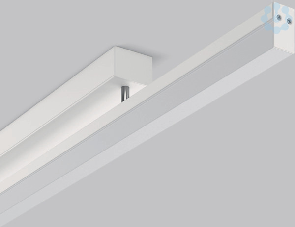 Minimalistische Decken- und Wandleuchte mit dreiseitiger Lichtabstrahlung. Gehäuse Aluminium-Strangpressprofil eloxiert oder pulverbeschichtet. Endkappen Aluminium eloxiert oder pulverbeschichtet. Diffusor aus vergilbungsfreiem Kunststoff (PMMA) opal. Geeignet für Deckenanbau, Wandanbau. Betriebsgerät im Baldachin integriert.