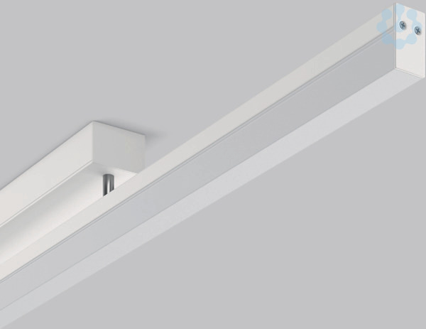 Minimalistische Decken- und Wandleuchte mit dreiseitiger Lichtabstrahlung. Gehäuse Aluminium-Strangpressprofil eloxiert oder pulverbeschichtet. Endkappen Aluminium eloxiert oder pulverbeschichtet. Diffusor aus vergilbungsfreiem Kunststoff (PMMA) opal. Geeignet für Deckenanbau, Wandanbau. Betriebsgerät im Baldachin integriert.