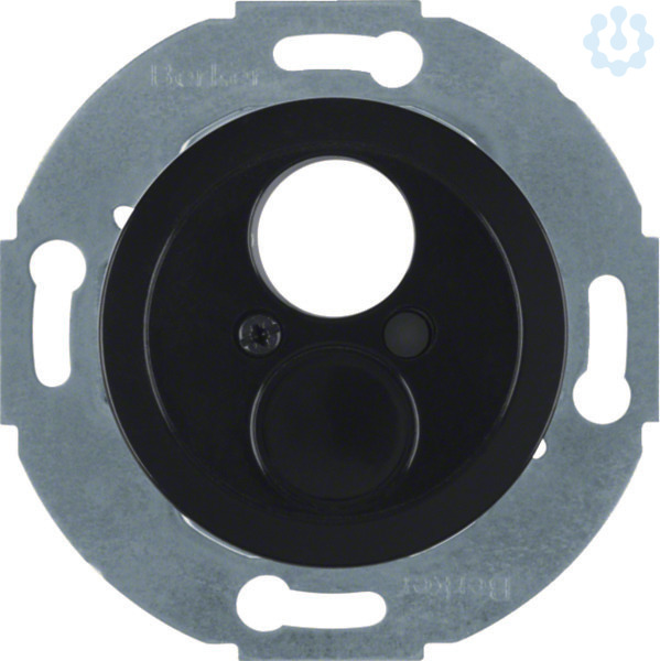 Kleinsteckverbindereinsatz mit Zentralstück 1930/Glas/Palazzo schwarz, glänzend. Kleinsteckverbindersatz mit Zentralstück. Für 1 oder 2 Verbinder. Für Lautsprecherbuchsen, Diodensteckverbindungen, Kleinsteckverbindungen für Flanschbefestigung mit 22,2mm Lochabstand nach DIN 51529. Für BNC/TNC Buchsen mit Isolierstück. Unterputz-Installation, Sonderprogramm.