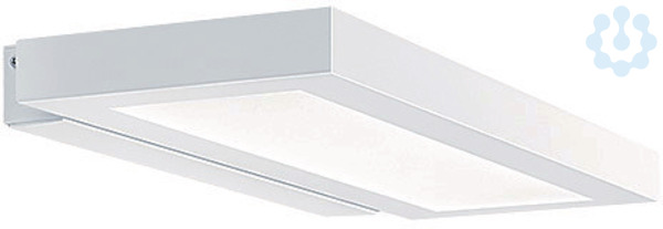 Flache Indirekt-/Direkt-LED-Wandleuchte in weiß mit Leuchtdichte-reduzierender Optik für fugeloses Erscheinungsbild. Leuchten Leistung: 54,5 W, DALI steuerbare Leuchte mit LED-Konverter, LED-Lebensdauer 50000 h bis zu einem Lichtstromrückgang auf 90 % des Anfangswertes. Farborttoleranz (initial MacAdam): 3. Leuchten Lichtstrom: 6500 lm, Leuchten Lichtausbeute: 119 lm/W. Farbwiedergabe Ra > 90, Farbtemperatur 4000 K. Abstrahlcharakteristik indirekt/direkt im Verhältnis 70:30. Lichtlenkung Direktlicht basierend auf Leuchtdichte-reduzierender Optik mit fugenlosem Erscheinungsbild und definierter Lichtauskopplung für entblendete Lichtverteilung mit UGR < 19 und L65 < 3000 cd/m² gemäß EN 12464-1, asymmetrische indirekte Lichtverteilung. Flaches Leuchtengehäuse aus Stahl mit sichtbarer Leuchtenhöhe von 40mm, Leuchte halogenfrei verdrahtet. Abmessungen: 629 x 200 x 40 mm, Gewicht: 4,5 kg