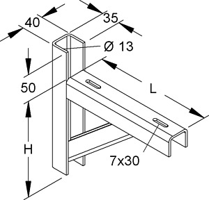 Wandausleger, schwer, für die Verlegung von Kabelrinnen und Kabelleitern ohne zusätzliche Gewindestababhängung im Funktionserhalt, einschließlich galvanisch verzinkten anteilmäßigem Befestigungszubehör. Zur Verwendung im Funktionserhalt bitte Zusatzvorschriften beachten! Abmessungen (ca. Maße) Auflagehöhe H : 180 mm Auflagelänge L : 221 mm Werkstoff Ausleger : Stahl, tauchfeuerverzinkt nach DIN EN ISO 1461