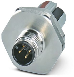 Wanddurchführung, Universal, 4-polig, ungeschirmt, Stecker gerade M12, Kodierung: A, Vorderwandmontage, M20 x 1,5, Push-Lock-Anschluss, Rändelmaterial: Messing, vernickelt