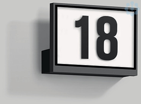 BEGA Hausnummernleuchte 24455K4. LED, 2,5 W Leuchten-Anschlussleistung, Leuchten-Lichtstrom 80 lm, Farbtemperatur 4000 K. Farbwiedergabeindex (CRI) > 80. Mit austauschbarem BEGA LED-Modul mit Übertemperaturschutz und einer Lebenserwartung von mindestens 50.000 Betriebsstunden. 20-jährige Nachliefergarantie auf das LED-Modul und die Verschleißteile. Mit BEGA Ultimate Driver® LED-Netzteil 220-240 V, 0/50-60 Hz. Schutzart IP 65. Leuchte aus Aluminiumguss, Aluminium und Edelstahl Beschichtungstechnologie BEGA Unidure® , Farbe Grafit. Kristallglas innen weiß, mit 1- bis 3-stelligen Zahlen, Höhe 75-120 mm. Zwei Leitungseinführungen zur Durchverdrahtung der Netzanschlussleitung bis Ø 10,5 mm. Abmessungen: 225 x 160 x 65 mm.