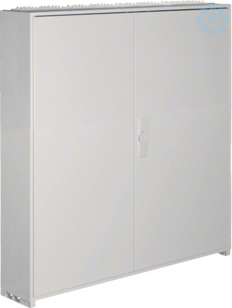 Schrank, univers, IP54/I, 1100x1050x205mm, leer. Wandaufbauschrank für die Innenraummontage mit VDE-Gutachten (Fertigungsüberwachung) nach DIN EN 61439-1/-3 und Maßnorm DIN 43870, zur Aufputz-, Unterputz- oder teilversenkter Montage. Zum Aufbau einer Niederspannungsverteilung bis 400 A, 3AC 230/400 V 50 Hz. Schutzart IP54, Schutzklasse I, Luft- und Kriechstrecken nach DIN VDE 0110-1/-2. Bestehend aus Schrank mit Tür aus pulverbeschichtetem, eingebranntem, stabil profiliertem 1 mm dickem Stahlblech, Innenauskleidung aus Kunststoff. Durchsteckflansche oben und unten je Feld eingebaut, rückseitige Vorprägung im Kunststoffteil und Sammelschienendurchführungen als beidseitige seitliche Vorprägung im unteren Bereich. Tür frontbündig mit innenliegenden, justierbaren Scharnieren, wahlweise rechts oder links anschlagbar mit 110 Grad Öffnungswinkel. Tür mit Vorreiber, ab Breite 800 mm und bei allen Schränken ab einer Höhe von 1250 mm mit Stangenverschluß mit Dreipunktschließung. Hinweis: Türverschluß durch andere Schli