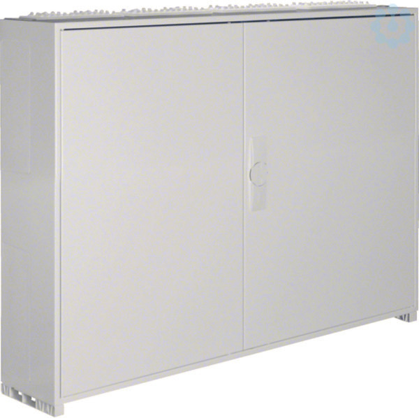 Schrank, univers, IP44/II, 800x1050x205mm, leer. Wandaufbauschrank für die Innenraummontage mit VDE-Gutachten (Fertigungsüberwachung) nach DIN EN 61439-1/-3 und Maßnorm DIN 43870, zur Aufputz-, Unterputz- oder teilversenkter Montage. Zum Aufbau einer Niederspannungsverteilung bis 400 A, 3AC 230/400 V 50 Hz. Schutzart IP44, Schutzklasse II, Luft- und Kriechstrecken nach DIN VDE 0110-1/-2. Bestehend aus Schrank mit Tür aus pulverbeschichtetem, eingebranntem, stabil profiliertem 1 mm dickem Stahlblech, Innenauskleidung aus Kunststoff. Durchsteckflansche oben und unten je Feld eingebaut, rückseitige Vorprägung im Kunststoffteil und Sammelschienendurchführungen als beidseitige seitliche Vorprägung im unteren Bereich. Tür frontbündig mit innenliegenden, justierbaren Scharnieren, wahlweise rechts oder links anschlagbar mit 110 Grad Öffnungswinkel. Tür mit Vorreiber, ab Breite 800 mm und bei allen Schränken ab einer Höhe von 1250 mm mit Stangenverschluß mit Dreipunktschließung. Hinweis: Türverschluß durch andere Schl