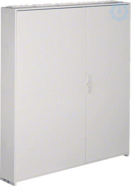 Schrank, univers, IP44/I, 1400x1300x205mm, leer. Wandaufbauschrank für die Innenraummontage mit VDE-Gutachten (Fertigungsüberwachung) nach DIN EN 61439-1/-3 und Maßnorm DIN 43870, zur Aufputz-, Unterputz- oder teilversenkter Montage. Zum Aufbau einer Niederspannungsverteilung bis 400 A, 3AC 230/400 V 50 Hz. Schutzart IP44, Schutzklasse I, Luft- und Kriechstrecken nach DIN VDE 0110-1/-2. Bestehend aus Schrank mit Tür aus pulverbeschichtetem, eingebranntem, stabil profiliertem 1 mm dickem Stahlblech, Innenauskleidung aus Kunststoff. Durchsteckflansche oben und unten je Feld eingebaut, rückseitige Vorprägung im Kunststoffteil und Sammelschienendurchführungen als beidseitige seitliche Vorprägung im unteren Bereich. Tür frontbündig mit innenliegenden, justierbaren Scharnieren, wahlweise rechts oder links anschlagbar mit 110 Grad Öffnungswinkel. Tür mit Vorreiber, ab Breite 800 mm und bei allen Schränken ab einer Höhe von 1250 mm mit Stangenverschluß mit Dreipunktschließung. Hinweis: Türverschluß durch andere Schli