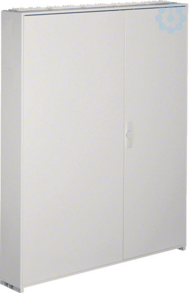 Schrank, univers, IP44/I, 1550x1300x205mm, leer. Wandaufbauschrank für die Innenraummontage mit VDE-Gutachten (Fertigungsüberwachung) nach DIN EN 61439-1/-3 und Maßnorm DIN 43870, zur Aufputz-, Unterputz- oder teilversenkter Montage. Zum Aufbau einer Niederspannungsverteilung bis 400 A, 3AC 230/400 V 50 Hz. Schutzart IP44, Schutzklasse I, Luft- und Kriechstrecken nach DIN VDE 0110-1/-2. Bestehend aus Schrank mit Tür aus pulverbeschichtetem, eingebranntem, stabil profiliertem 1 mm dickem Stahlblech, Innenauskleidung aus Kunststoff. Durchsteckflansche oben und unten je Feld eingebaut, rückseitige Vorprägung im Kunststoffteil und Sammelschienendurchführungen als beidseitige seitliche Vorprägung im unteren Bereich. Tür frontbündig mit innenliegenden, justierbaren Scharnieren, wahlweise rechts oder links anschlagbar mit 110 Grad Öffnungswinkel. Tür mit Vorreiber, ab Breite 800 mm und bei allen Schränken ab einer Höhe von 1250 mm mit Stangenverschluß mit Dreipunktschließung. Hinweis: Türverschluß durch andere Schli