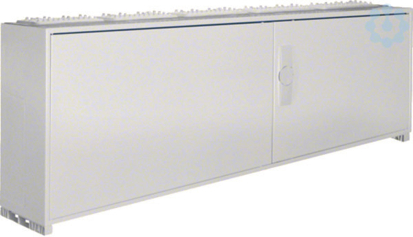 Schrank, univers, IP44/I, 500x1300x205mm, leer. Wandaufbauschrank für die Innenraummontage mit VDE-Gutachten (Fertigungsüberwachung) nach DIN EN 61439-1/-3 und Maßnorm DIN 43870, zur Aufputz-, Unterputz- oder teilversenkter Montage. Zum Aufbau einer Niederspannungsverteilung bis 400 A, 3AC 230/400 V 50 Hz. Schutzart IP44, Schutzklasse I, Luft- und Kriechstrecken nach DIN VDE 0110-1/-2. Bestehend aus Schrank mit Tür aus pulverbeschichtetem, eingebranntem, stabil profiliertem 1 mm dickem Stahlblech, Innenauskleidung aus Kunststoff. Durchsteckflansche oben und unten je Feld eingebaut, rückseitige Vorprägung im Kunststoffteil und Sammelschienendurchführungen als beidseitige seitliche Vorprägung im unteren Bereich. Tür frontbündig mit innenliegenden, justierbaren Scharnieren, wahlweise rechts oder links anschlagbar mit 110 Grad Öffnungswinkel. Tür mit Vorreiber, ab Breite 800 mm und bei allen Schränken ab einer Höhe von 1250 mm mit Stangenverschluß mit Dreipunktschließung. Hinweis: Türverschluß durch andere Schlie