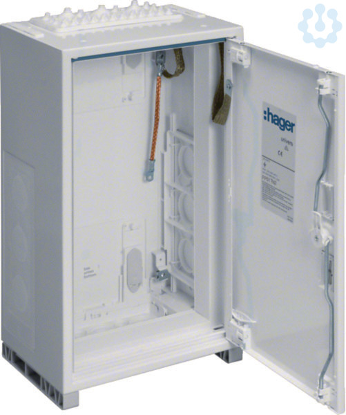 Schrank, univers, IP44/I, 800x300x205mm, leer. Wandaufbauschrank für die Innenraummontage mit VDE-Gutachten (Fertigungsüberwachung) nach DIN EN 61439-1/-3 und Maßnorm DIN 43870, zur Aufputz-, Unterputz- oder teilversenkter Montage. Zum Aufbau einer Niederspannungsverteilung bis 400 A, 3AC 230/400 V 50 Hz. Schutzart IP44, Schutzklasse I, Luft- und Kriechstrecken nach DIN VDE 0110-1/-2. Bestehend aus Schrank mit Tür aus pulverbeschichtetem, eingebranntem, stabil profiliertem 1 mm dickem Stahlblech, Innenauskleidung aus Kunststoff. Durchsteckflansche oben und unten je Feld eingebaut, rückseitige Vorprägung im Kunststoffteil und Sammelschienendurchführungen als beidseitige seitliche Vorprägung im unteren Bereich. Tür frontbündig mit innenliegenden, justierbaren Scharnieren, wahlweise rechts oder links anschlagbar mit 110 Grad Öffnungswinkel. Tür mit Vorreiber, ab Breite 800 mm und bei allen Schränken ab einer Höhe von 1250 mm mit Stangenverschluß mit Dreipunktschließung. Hinweis: Türverschluß durch andere Schließ