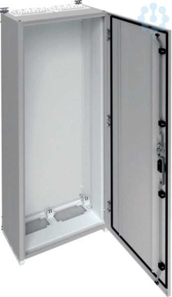Schrank, univers, IP55/II, 1550x550x275mm. Wandaufbauschrank für die Innenraummontage mit VDE-Gutachten (Fertigungsüberwachung) nach DIN EN 61439-1/-2/-3 und Maßnorm DIN 43870, zur Aufputz Montage. Zum Aufbau einer Niederspannungsverteilung bis 800 A, 3AC, 690 V 50 Hz. Schutzart IP55, Schutzklasse II, Luft- und Kriechstrecken nach DIN VDE 0110-1/-2. Bestehend aus Schrank mit Tür aus pulverbeschichtetem, eingebranntem, profiliertem 1,5 mm dicken Stahlblech. Durchsteckflansche oben, unten ISO-Flanschplatten mit metrischen Vorprägungen und Schnellverriegelung je Feld eingebaut. Sammelschienendurchführungen als seitliche Vorprägung. Tür aufliegend, mit innenliegenden Scharnieren, Türanschlag standardmäßig rechts, wechselbar, 110 Grad Öffnungswinkel. Serienmässig mit Schwenkhebelverschluss, DIN-Profil-Halbzylinder einbaubar. Türdichtung umlaufend geschäumt, temperaturbeständig und ölbeständig. Schrank nebeneinander und übereinander anflanschbar.
