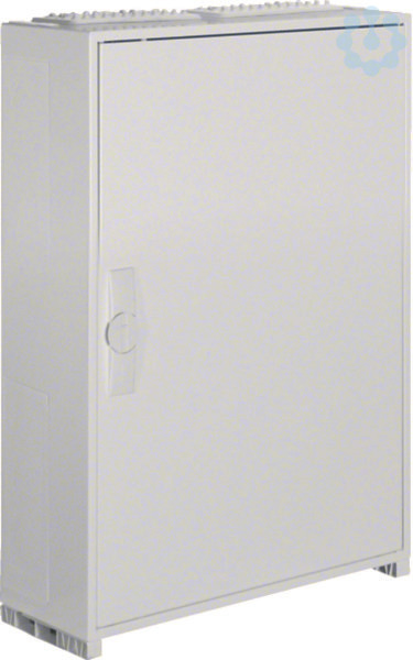 Schrank, univers, IP54/I, 800x550x205mm, leer. Wandaufbauschrank für die Innenraummontage mit VDE-Gutachten (Fertigungsüberwachung) nach DIN EN 61439-1/-3 und Maßnorm DIN 43870, zur Aufputz-, Unterputz- oder teilversenkter Montage. Zum Aufbau einer Niederspannungsverteilung bis 400 A, 3AC 230/400 V 50 Hz. Schutzart IP54, Schutzklasse I, Luft- und Kriechstrecken nach DIN VDE 0110-1/-2. Bestehend aus Schrank mit Tür aus pulverbeschichtetem, eingebranntem, stabil profiliertem 1 mm dickem Stahlblech, Innenauskleidung aus Kunststoff. Durchsteckflansche oben und unten je Feld eingebaut, rückseitige Vorprägung im Kunststoffteil und Sammelschienendurchführungen als beidseitige seitliche Vorprägung im unteren Bereich. Tür frontbündig mit innenliegenden, justierbaren Scharnieren, wahlweise rechts oder links anschlagbar mit 110 Grad Öffnungswinkel. Tür mit Vorreiber, ab Breite 800 mm und bei allen Schränken ab einer Höhe von 1250 mm mit Stangenverschluß mit Dreipunktschließung. Hinweis: Türverschluß durch andere Schließ
