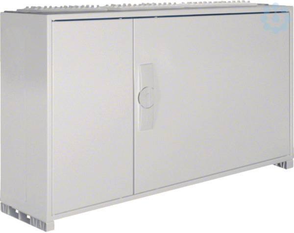 Schrank, univers, IP44/II, 500x800x205mm, leer. Wandaufbauschrank für die Innenraummontage mit VDE-Gutachten (Fertigungsüberwachung) nach DIN EN 61439-1/-3 und Maßnorm DIN 43870, zur Aufputz-, Unterputz- oder teilversenkter Montage. Zum Aufbau einer Niederspannungsverteilung bis 400 A, 3AC 230/400 V 50 Hz. Schutzart IP44, Schutzklasse II, Luft- und Kriechstrecken nach DIN VDE 0110-1/-2. Bestehend aus Schrank mit Tür aus pulverbeschichtetem, eingebranntem, stabil profiliertem 1 mm dickem Stahlblech, Innenauskleidung aus Kunststoff. Durchsteckflansche oben und unten je Feld eingebaut, rückseitige Vorprägung im Kunststoffteil und Sammelschienendurchführungen als beidseitige seitliche Vorprägung im unteren Bereich. Tür frontbündig mit innenliegenden, justierbaren Scharnieren, wahlweise rechts oder links anschlagbar mit 110 Grad Öffnungswinkel. Tür mit Vorreiber, ab Breite 800 mm und bei allen Schränken ab einer Höhe von 1250 mm mit Stangenverschluß mit Dreipunktschließung. Hinweis: Türverschluß durch andere Schli