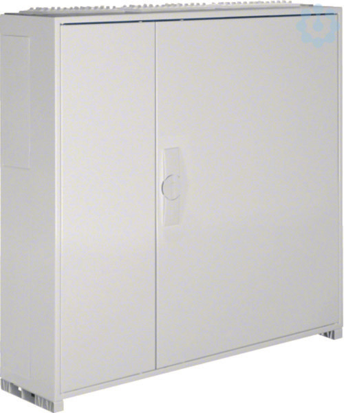 Schrank, univers, IP54/I, 800x800x205mm, leer. Wandaufbauschrank für die Innenraummontage mit VDE-Gutachten (Fertigungsüberwachung) nach DIN EN 61439-1/-3 und Maßnorm DIN 43870, zur Aufputz-, Unterputz- oder teilversenkter Montage. Zum Aufbau einer Niederspannungsverteilung bis 400 A, 3AC 230/400 V 50 Hz. Schutzart IP54, Schutzklasse I, Luft- und Kriechstrecken nach DIN VDE 0110-1/-2. Bestehend aus Schrank mit Tür aus pulverbeschichtetem, eingebranntem, stabil profiliertem 1 mm dickem Stahlblech, Innenauskleidung aus Kunststoff. Durchsteckflansche oben und unten je Feld eingebaut, rückseitige Vorprägung im Kunststoffteil und Sammelschienendurchführungen als beidseitige seitliche Vorprägung im unteren Bereich. Tür frontbündig mit innenliegenden, justierbaren Scharnieren, wahlweise rechts oder links anschlagbar mit 110 Grad Öffnungswinkel. Tür mit Vorreiber, ab Breite 800 mm und bei allen Schränken ab einer Höhe von 1250 mm mit Stangenverschluß mit Dreipunktschließung. Hinweis: Türverschluß durch andere Schließ