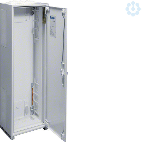 Schrank, univers, IP44/I, 950x300x205mm, leer. Wandaufbauschrank für die Innenraummontage, mit VDE-Gutachten (Fertigungsüberwachung) nach IEC 439, entspricht VDE 0660-500 und DIN EN 61439, Maßnorm DIN 43870 zur Aufputz, Unterputz oder teilversenkter Montage. Zum Aufbau einer Niederspannungsverteilung bis 355 A, 3AC 230/400 V 50 Hz. Schutzart IP44/IP54, Schutzart IP3X hinter der Tür, Luft- und Kriechstrecken nach DIN VDE 0110-1/-2. Bestehend aus Schrank mit Tür aus pulverbeschichtetem, eingebranntem, stabil profiliertem 1 mm dickem Stahlblech. Innenauskleidung aus Kunststoff. Universalleitungseinführungen oben und unten je Feld eingebaut, rückseitige Vorprägung im Kunststoffteil und Sammelschienendurchführungen als beidseitige seitliche Vorprägung im unteren Bereich. Tür frontbündig mit innenliegenden, justierbaren Scharnieren, wahlweise rechts oder links anschlagbar mit 110 Grad Öffnungswinkel. Türverschluss mit Vorreiber, ab Breite 800 mm und bei allen Schränken ab einer Höhe von 1250 mm mit (Keine Vorschläg