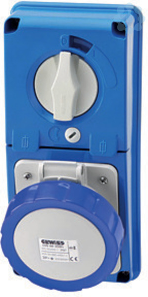 IEC Steckdose ohne Gehaeuseunterteil fuer senkrechte Anordnung mit Schalter und mechanischer Verriegelung. Der Schalter ist verriegelt und kann nur bei eingestecktem Stecker betaetigt werden. Durch ein Vorhaengeschloss kann die IEC Steckdose wahlweise im ein- oder ausgeschalteten Zustand gesichert werden. Die Zylindersicherungen sind als Sicherungstrenner unterhalb des Schalterantriebs angeordnet. Durch Oeffnen der Klappe werden die Sicherungen gezogen und sind zur Wartung zugaenglich. Fuer die Bemessungsstroeme 16 und 32 A ist die Groesse 10,3x38 mm und fuer 63 A die Groesse 22x58 mm eingesetzt. Zur Montage in Steckdosenkombinationen, Aufputz,- Unterputzgehaeusen und zum Einbau in Maschinen und Anlagen.